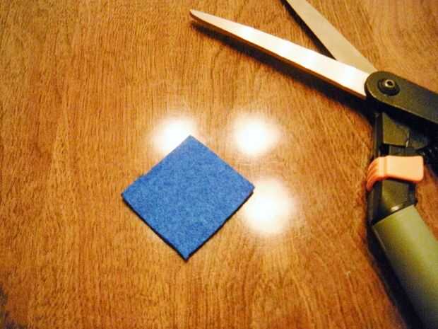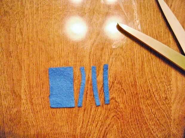 Tomar uno de sus cuadrados azules guardadas y cortar 6 tiras finas. Si usted no puede conseguirlos todos fuera de un cuadrado, utiliza más según sea necesario. Pude conseguir todas las 6 tiras fuera de un cuadrado azul para la mina.