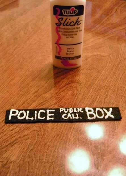 Luego usar la pintura de tela blanca para solicitar la inscripción "policía pública llamada caja" o simplemente "policía" corto si no tienes el espacio.