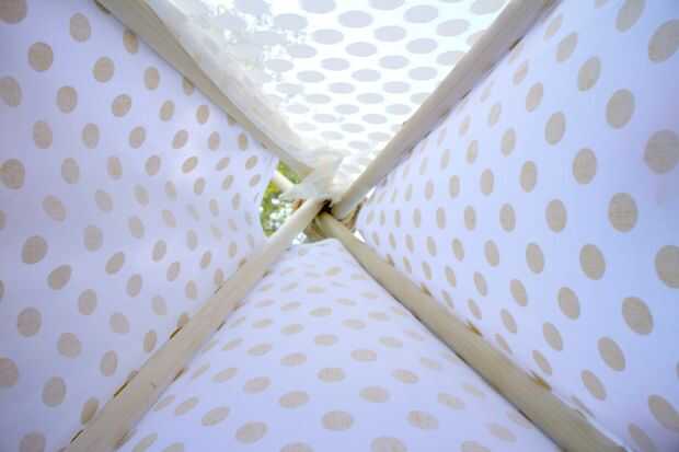Con unos pocos materiales y estos sencillos pasos usted puede construir tipi de un niño en pocas horas.Materiales utilizados:4 - postes de madera de 4 "x 60"Cordeles de yuteTela:6 yardas 55" muselina para los lados1 yarda 60" lienzo pa