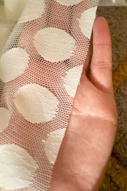 1 yarda de tela de malla de lunares (usé esto para que al corte, se desgaste. ¿Mencioné esto es un no-coser proyecto?)