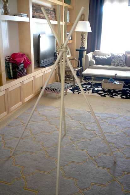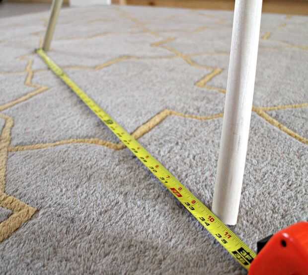 Te queremos hacer llegar a la estructura de la tipi igual como sea posible y hacer que simplemente medí las distancias alrededor de la espiga "piernas". He decidido que era feliz con un 34 pulgadas de separación, permitiendo que la estructura de soporte cómodamente en su el propios, sin miedo de volcar o colapso en sí mismo.