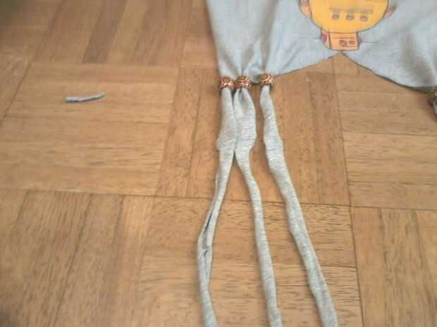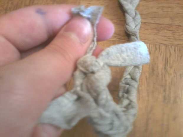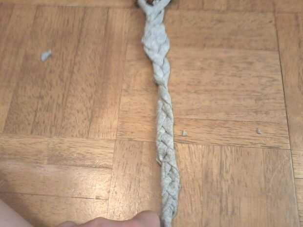 Cada una de las cintas ahora se corta en 3 lo que significa que les trenza de. Pero la primera cadena de tres de sus bolas en cada lado de las correas superiores. Entonces a partir del trenzado de las cintas superior e inferior. Una vez que usted no puede trenza mucho más simplemente atar el resto de la trenza en un nudo seguro.