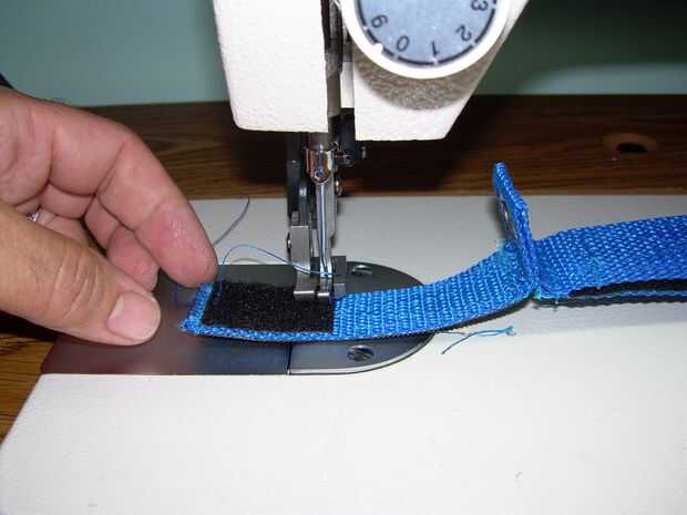 Coser un pedazo de velcro a su nuevo pedazo corto de la cinta. Luego coser el otro trozo de velcro en el exterior de la pierna de la correa. En este momento necesita coser la correa de fijación a la correa, es difícil de describir donde toma así un cierre mira las fotos de como funciona esto.