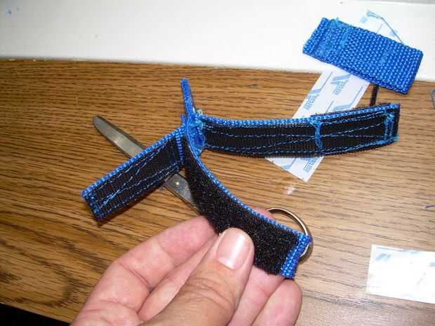 Así que lo que necesita es otra pieza corta de correas de nylon y otra dos piezas de velcro. En este punto creo que debo señalar que debe quemar ligeramente los extremos de nylon donde se cortan para evitar colapso.