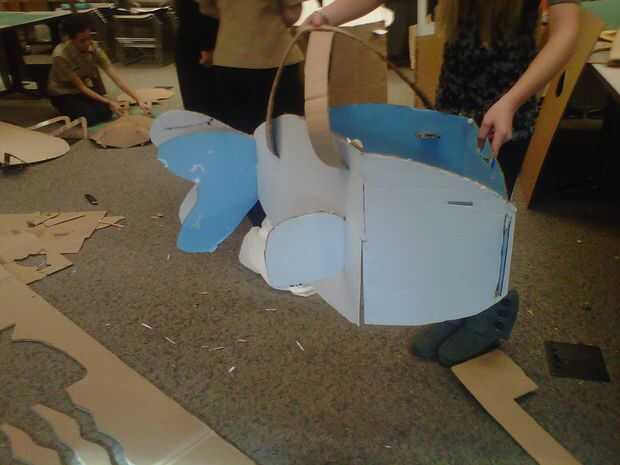 Dentro de mi equipo era el responsable de diseñar un traje para niños de secundaria de años dentro de la temática "Animales del arrecife". El traje estaba hecho de cartón reciclado y tenía la capacidad de ranura juntos. El proyecto tuvo muy pocas especificaciones. Eran el traje debe ranura juntos, fácil construcción, capacidad de uso en interiores y al aire libre y diseñado para los niños bajo supervisión mínima a partir de secundaria.