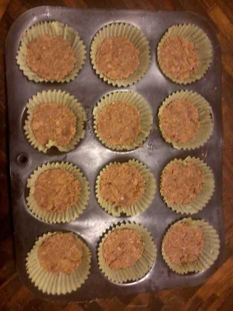 Coloque un forro de cupcake en cada pocillo de la bandeja de la Magdalena. Primicia una cucharada colmada de la mezcla de la corteza en la parte inferior de cada cupcake liner y presione abajo firmemente con la parte inferior de la cuchara.