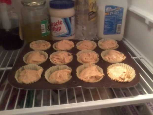 Refrigerar durante al menos 1-1/2 horas antes de retirar los cupcakes de calabaza tarta de queso de la lata de la Magdalena