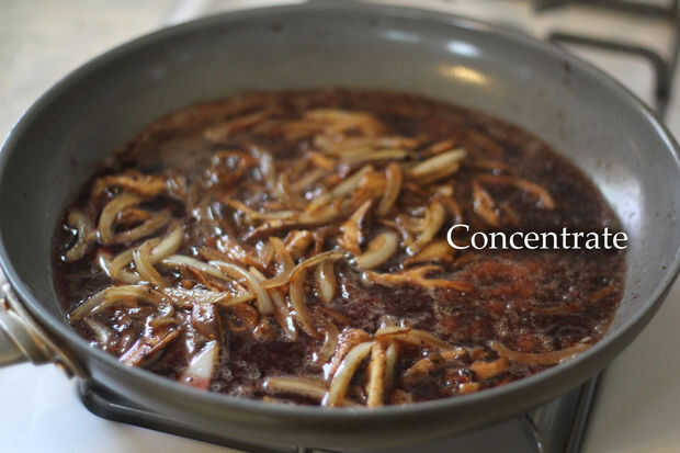 Descarga en 3/4 a 1 taza de vino y reducirlo. Concentrar ese tipo de cosas hasta el punto de estar casi seco. Las salsas son todo sobre concentración de sabor por la reducción.