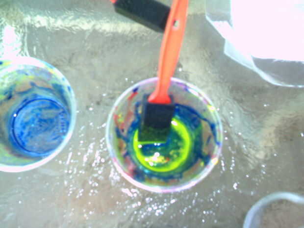 Añadir el agua. Globo ocularlo. Desea agregar áspero dos veces ḿas agua como pintura. Pero no insistir sobre él. No quiero llenar la taza con agua. Usted no quiere tener la pintura demasiado gruesa. Estás apuntando para un buen escurrimiento fácil de salpicaduras y goteo de la pintura de colores brillantes.