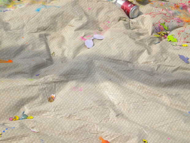 Extender la tela sobre un trozo de plástico que es ligeramente más grande que la tela.