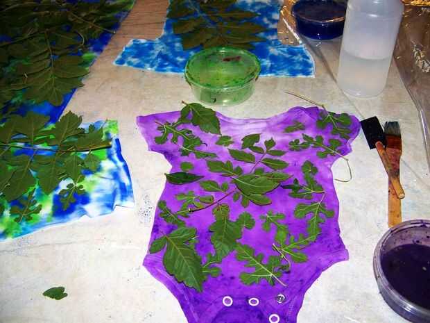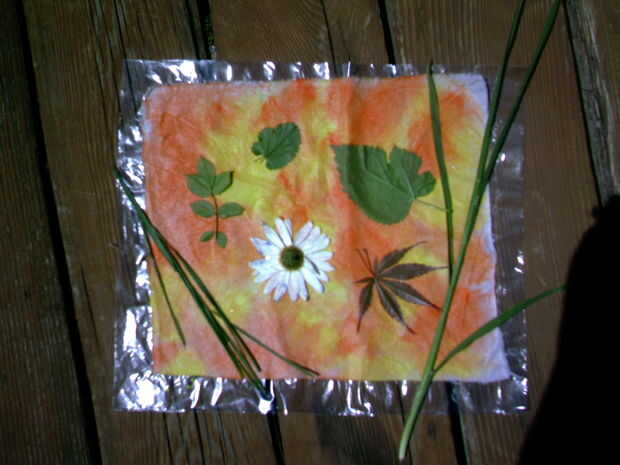 Arreglar planta material en la superficie de su tela.  Presione suavemente hacia abajo.