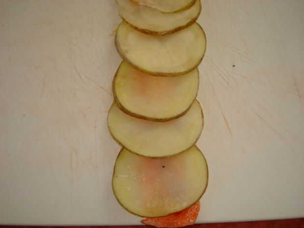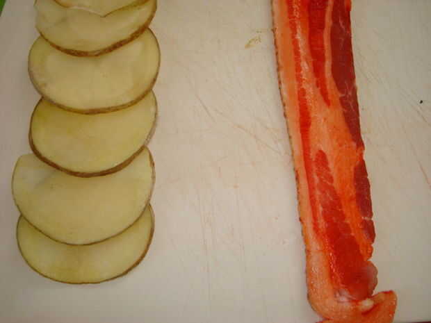 No dejar de tocino y Papa rosa (4 / 8 paso)
