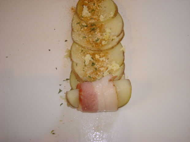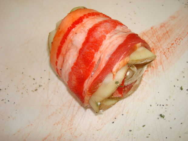 No dejar de tocino y Papa rosa (5 / 8 paso)