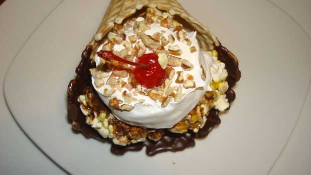 dulce, salado, cremoso, mantecoso, suave, crujiente... ¿necesito ir en?La infusión de crema con sabor a recién hecho estallar, salado, untado con mantequilla palomitas hace un particularmente delicioso Creme brulee. La cuchara grietas a través de la