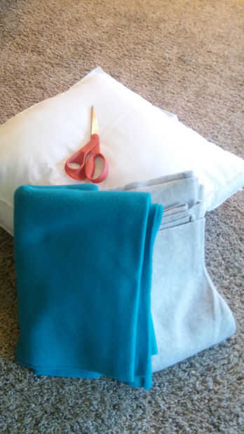 Paño grueso y suave - unos 3/4 yarda de cada tejido. Podría hacer una almohada con un color o dos