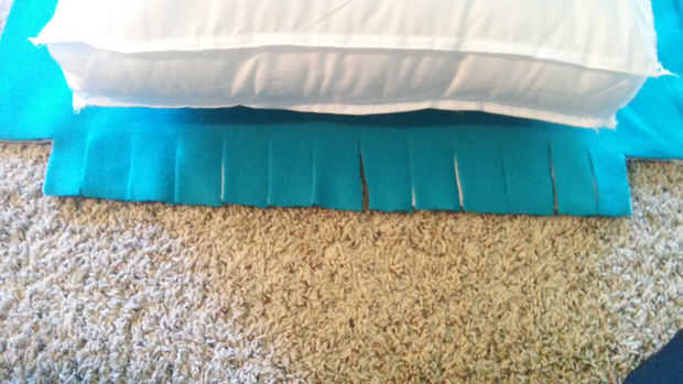 Una vez que tengas el tamaño general de la tela de su tiempo para cortar el flequillo en la tela.