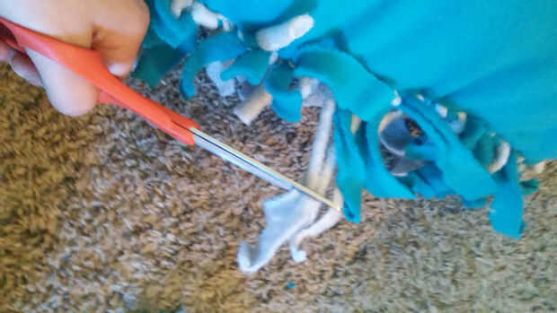 Una vez que la franja estaba atada fui capaz de hacer un rápido ajuste de la franja. Un lado tenía el borde todavía en él y era capaz de recortar después de terminar la vinculación.