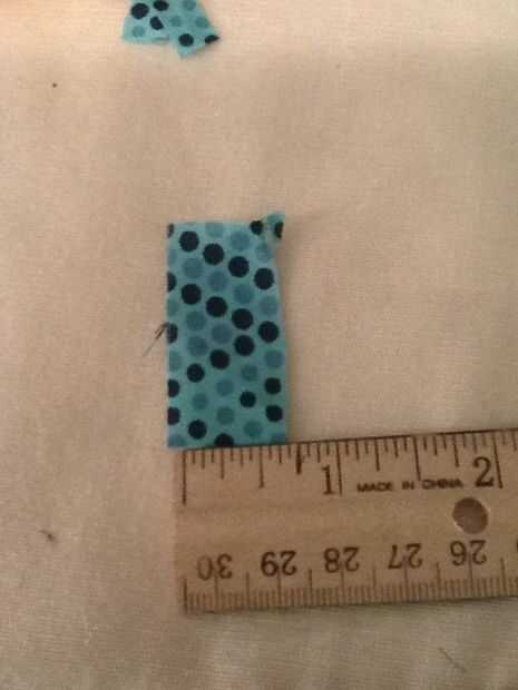 y un 3/4tas de una pulgada por una pulgada el pedazo de tela