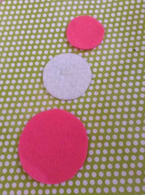 Cortar 3 círculos diferentes: uno del color que elegiste, uno, un poco más pequeña que la primera en blanco y uno ligeramente más pequeño que el blanco.