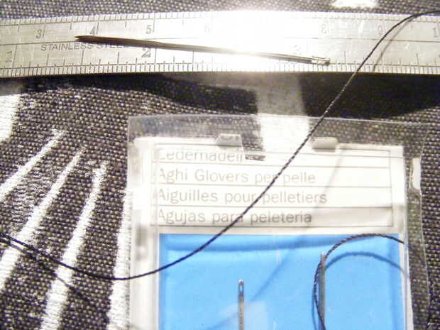 aguja. tipo de trabajo de cuero. acepten hilo fuerte y el punto es un poco más ancho que el extremo con el agujero.