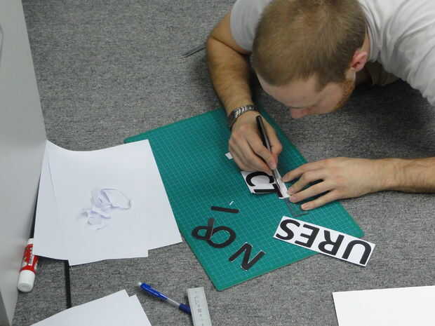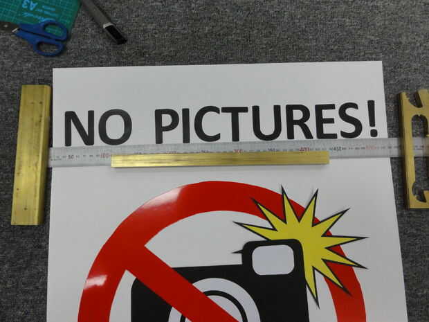 Decidí mano cortar cada letra de "NO fotos" y pegado a la Junta.