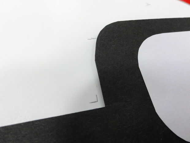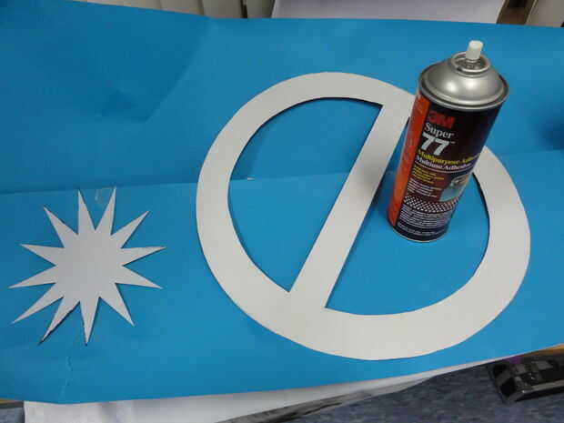 Para unir todas las piezas, utilizar pegamento de aerosol de 3M. Hice la marca en la cartulina blanca para ayudarme cuando coloque la pieza recién pegada en él.