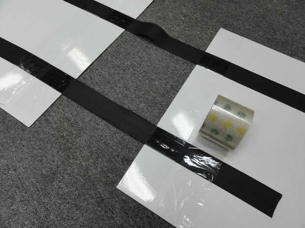 Luego prueba que encajen para saber la longitud que necesitaría para ello. 9 pulgadas de largo es perfecto para mí. Entonces pegué todo con el spray adhesivo de 3 M.