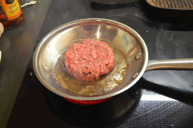 Precalentar el sartén con un poco de mantequilla y el aceite, cocinar la hamburguesa a su punto de cocción deseado (manteniendo en las recomendaciones de seguridad de alimentos de mente). Finalmente dejó el resto hamburguesa durante unos minutos volver a absorber los jugos, como lo está haciendo que usted puede conseguir el pan y aderezos montados.