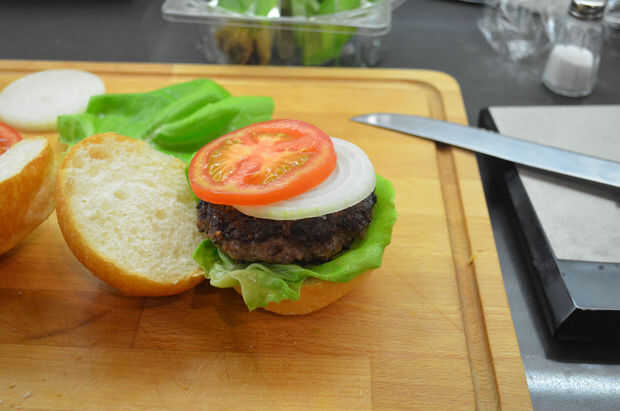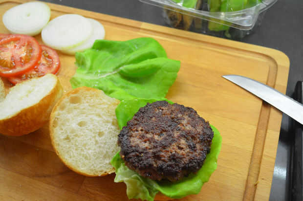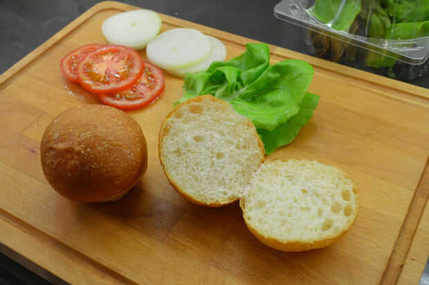 Me gusta la picadura de algunos frescos crudos en rodajas la cebolla, el dulzor del tomate, y usar lechuga de Boston babero (por lo que realmente no necesito un babero -! la lechuga deja el jugo de remojar la parte inferior del moño!). Elegí un bollo blando mediano blanco con un poco de un exterior crujiente.