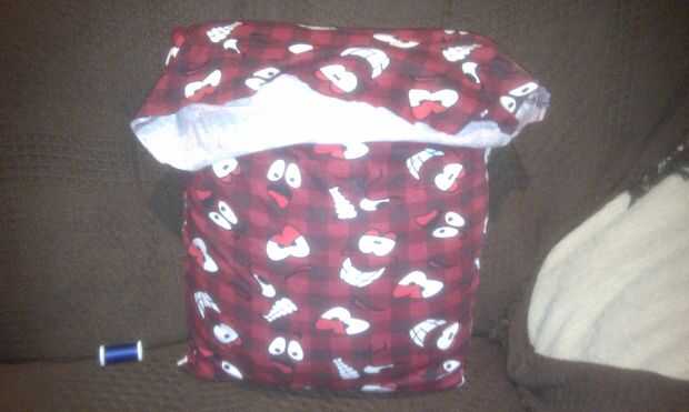 Siguiente paso es marcar el resto de la cubierta. Girar su pantalón hacia fuera y conseguir el cojín, poniendo el cojín en puede ver donde es necesario recortar el material. Si usted está haciendo una un medida encargo el resto de su tamaño de la cubierta. Para este diseño una vez que ha marcado donde el amortiguador deja marcar otro 8-10 cms más de marcar y recortar.