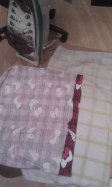 En el fondo uso dos tiras de cinta al lado del otro entre el material, esto le dará un buen sello de unos 2-3 cms. Utilice su plancha de hierro con cuidado sobre el material el material en la parte inferior de sellado. Asegúrese de que usted ha dado a esta costura un buen calor incluso para que la cinta pueda hacer una buena adherencia. Le dan un minuto o dos para enfriar.