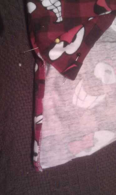 Asegúrese de que su cubierta es dentro hacia fuera y recostarla con la aleta más pequeña en la parte superior. Aquí podría planchar la solapa hacia atrás para darle una buena recta para ver, llegué a engañar un poco debido al patrón de verificación. Poner una longitud de malla debajo de la solapa y plancha la costura como antes. Se trata de un acabado borde así que tómate tu tiempo.