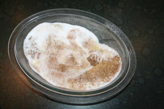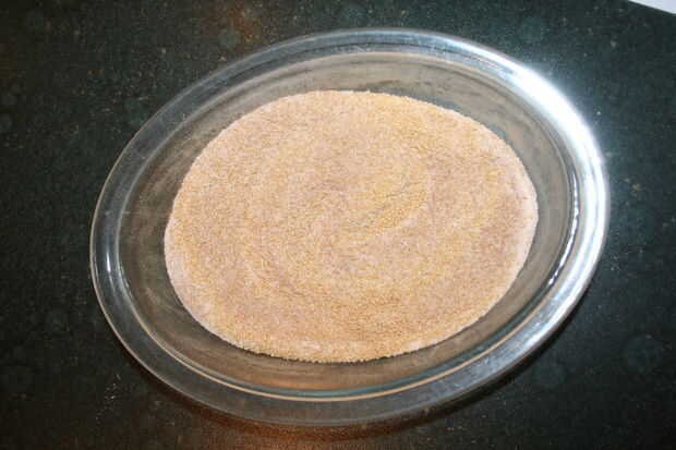 El primer paso es combinar 150 gr. de cuscús, 2 cucharaditas de canela, 1 cucharadita de nuez moscada y 4 cucharaditas de edulcorante.