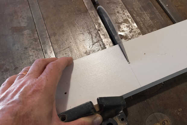 Después de probar mis medidas en un pedazo de chatarra, corrí tanto laterales, un extremo corto y la pared interior a través de la Sierra de mesa. El otro extremo corto no necesita un dado corte.
