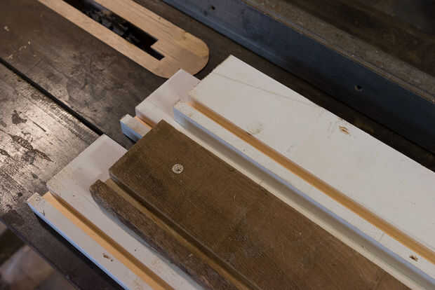 Yo a continuación, ajuste la Sierra de mesa con un disco de moldurar Coloque 7/16" ancho para cortar la ranura en la cual se ajusta el piso de madera contrachapada. Ajuste la altura de la hoja para cortar a una profundidad de ranura de 5/8". Mi meta en la colocación del piso de madera contrachapada en esta ranura debe tener una pequeña habitación entre los bordes de la madera y las paredes del marco para permitir la expansión debido a la humedad, así que necesitarás cambiar el tamaño en consecuencia.