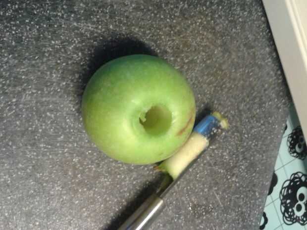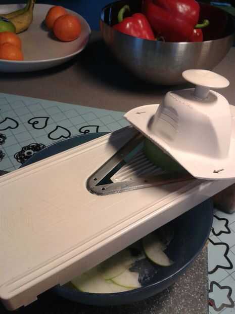 Lavar las manzanas, quitar el corazón y cortar las manzanas en rodajas lo más finas posible.
