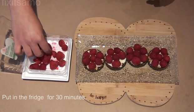 Añadir las frambuesas y poner en la nevera durante 30 minutos.