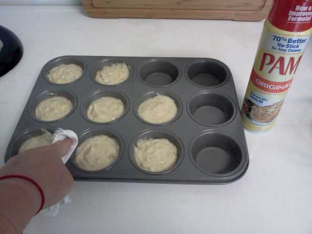 Paso 4: Preparación de las bandejas y agregar la mezcla de pan de plátano