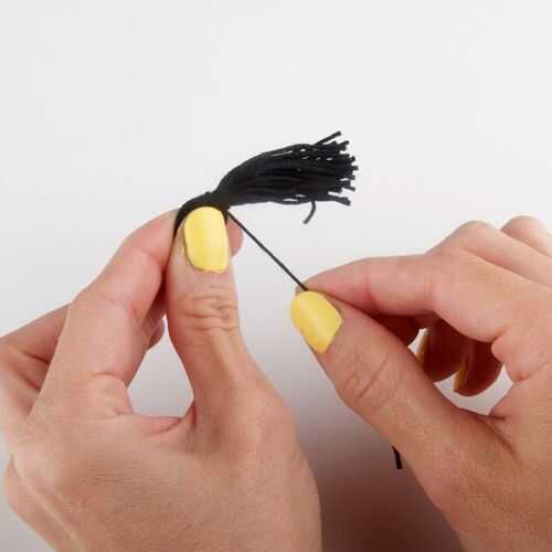 Agarrar firmemente su borla al final y comenzar a envolver con una de las piezas sueltas de hilo.