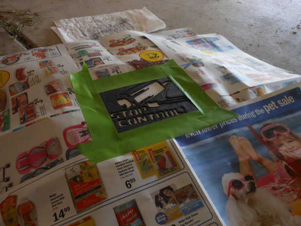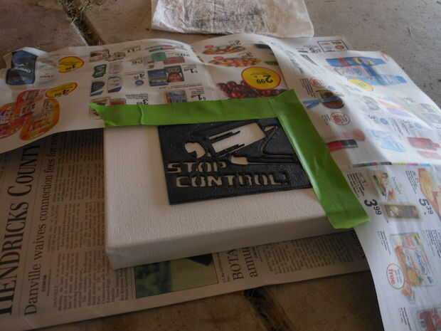 Una vez que se ve bien.  Cinta todo apagado y rociar tu lienzo.