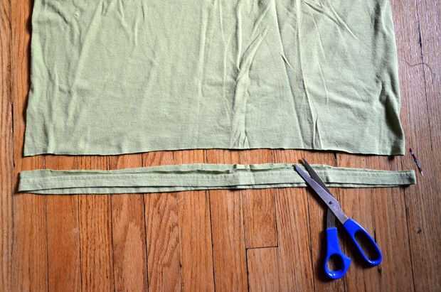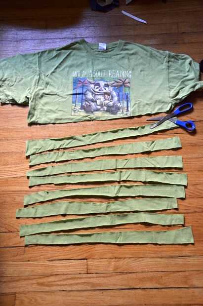 2. luego cortar la parte inferior de la camiseta en tiras 1" o 1 1/2". No tienen que ser perfectamente cortado.
