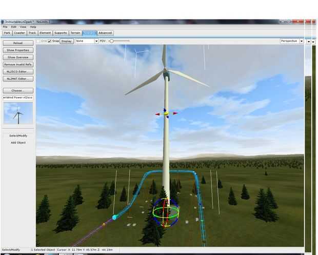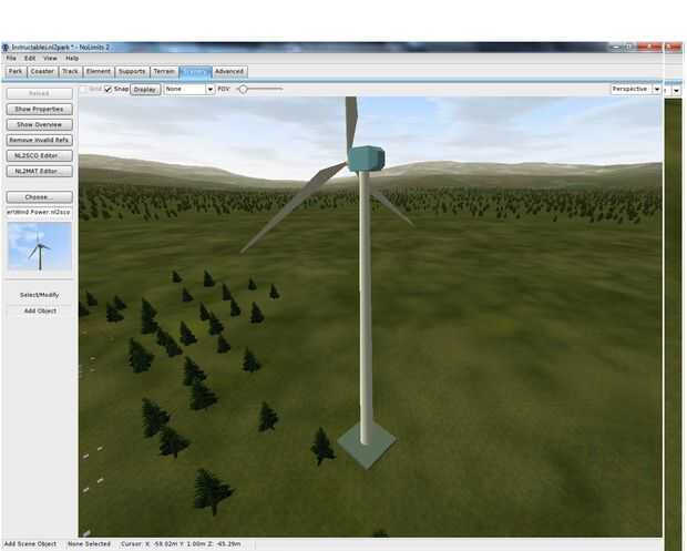 También hay otros objetos creados previamente, como la turbina de viento en la foto a continuación.