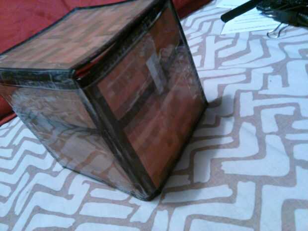 se trata de una réplica a escala de un pecho de minecraft. El del juego es de 14 X 14 X 14 píxeles de tamaño así que hice mío a escala 14 "X 14" X 14 "(1pixel = 1 pulgada). Incluso el grueso de pared es de 1" de ancho. I había utilizad