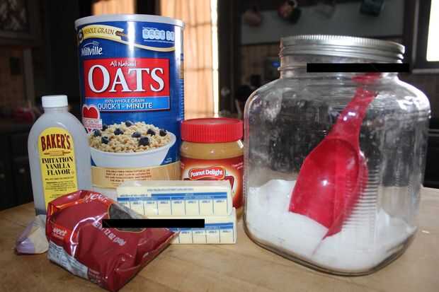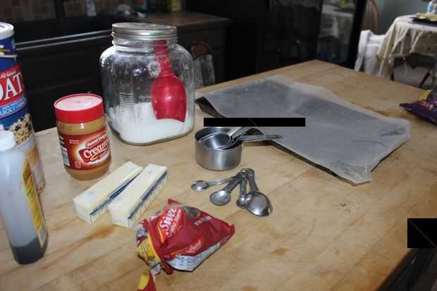 * Cacerola, bata, taza de medir y cucharas, galletas, papel de cera