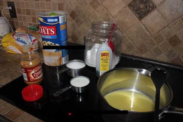 Estos son mi receta familiar, fácil de hacer, sin hornear galletas! Son cocinados en una estufa en vez de en el horno. No hay harina o bicarbonato de sodio requerido! CONTIENE MANTEQUILLA DE MANÍ! Lamentablemente este artículo es no intercambiables c