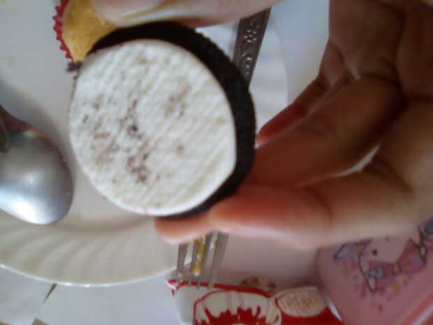 Rejilla alguna crema de Oreo, ponerlo en la parte superior de la Magdalena como foto 2