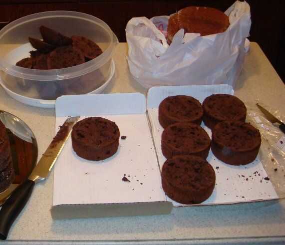 -Corte la parte superior de 6 muffins (no a la derecha en la parte superior inicia, pero sobre 1.5 pulgadas para arriba - hacerles la misma altura).