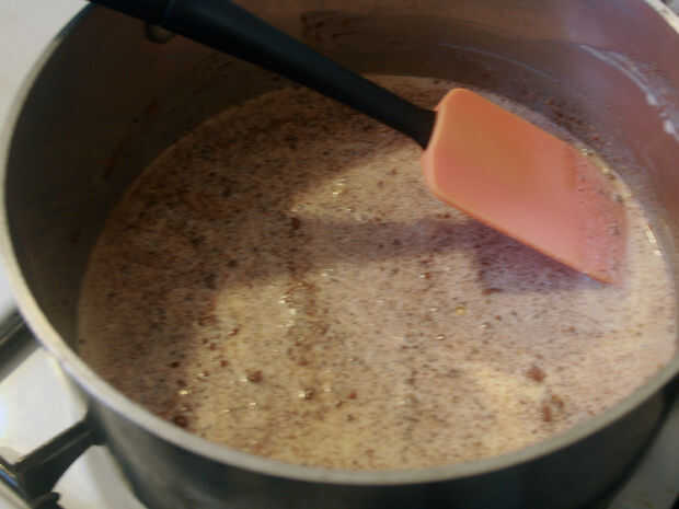 Cuando se cocina correctamente, natillas deben formar un canto leve en la punta de una espátula cuando se raspa el fondo de la olla.