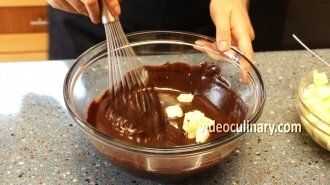 Poco a poco Añadir 500 gramos (15 onzas) de mantequilla blanda a la mezcla de chocolate, añadir una cucharada a la vez.