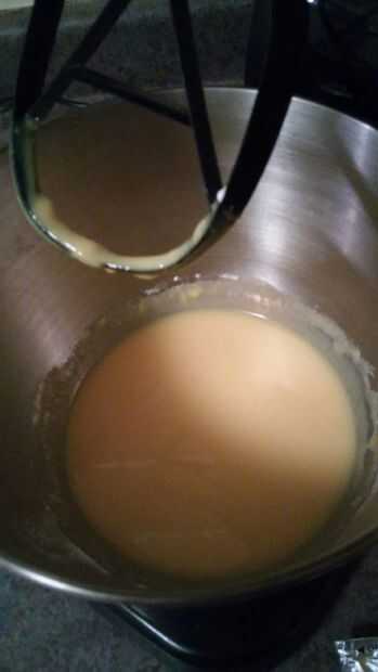 Mezcle el pudín instantáneo con 1 taza de rompope. Mezclar a velocidad media durante 2 minutos.